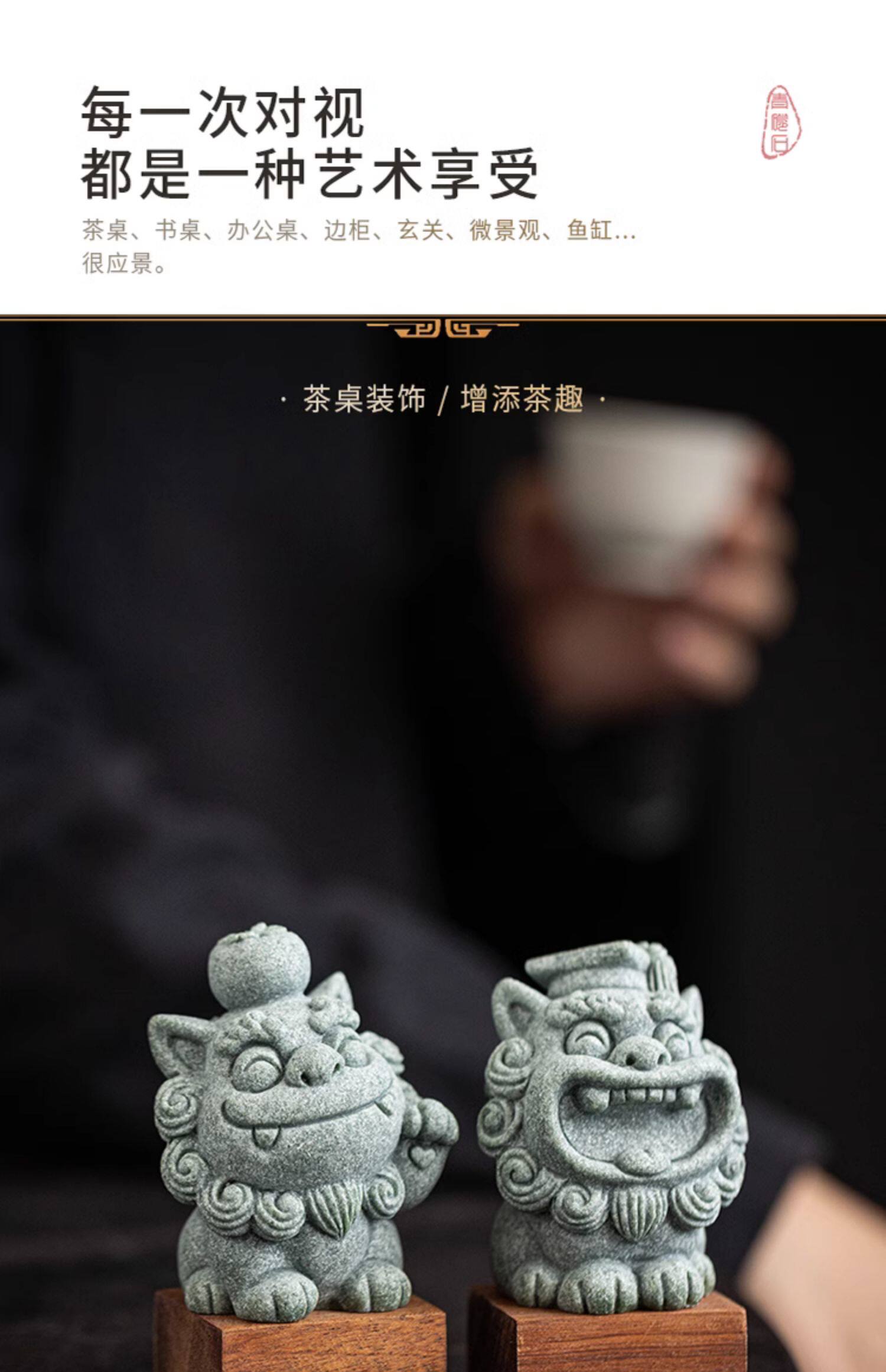 创意可爱小狮子茶宠摆件带底座招财进宝博才如意家居客厅茶桌装饰